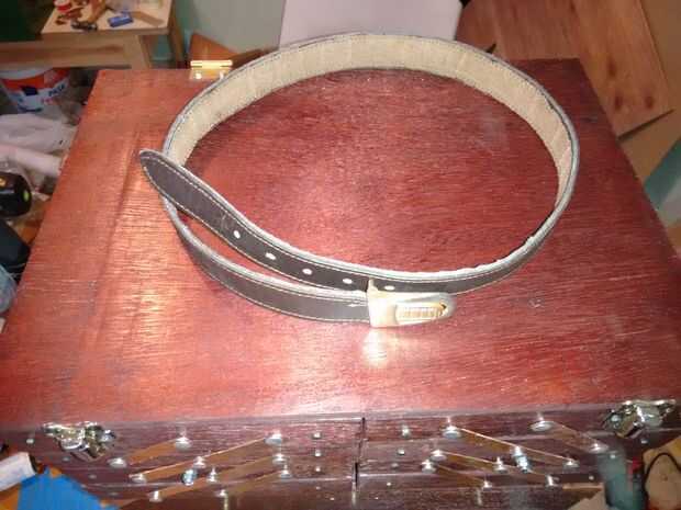 Un mango se hizo para hacer un poco más portátil el toolchest, estaba hecha de una vieja correa de cuero y un pedazo sobrante de cobre.