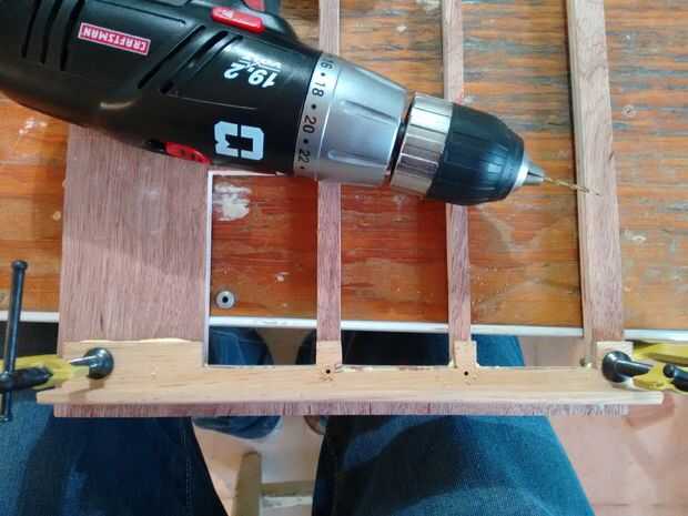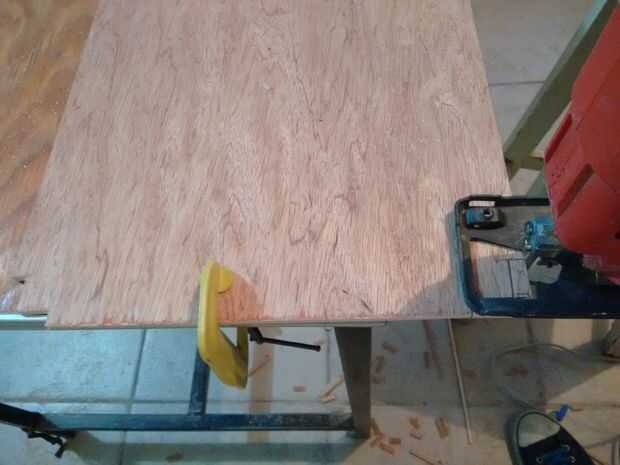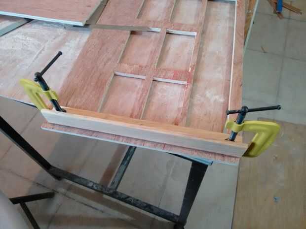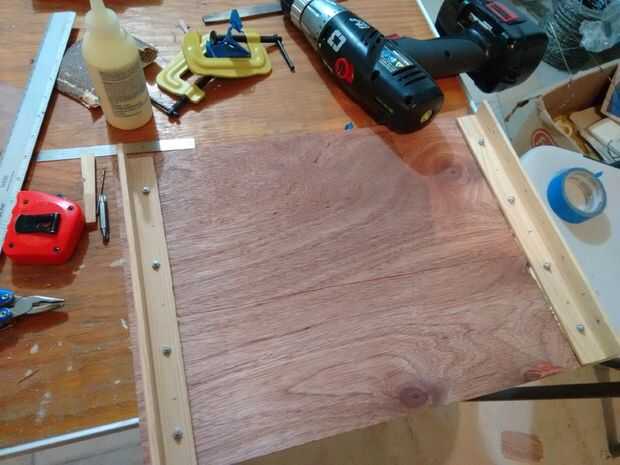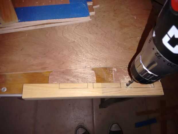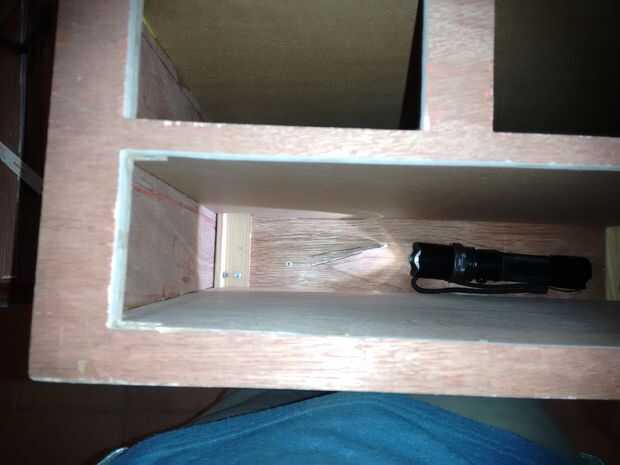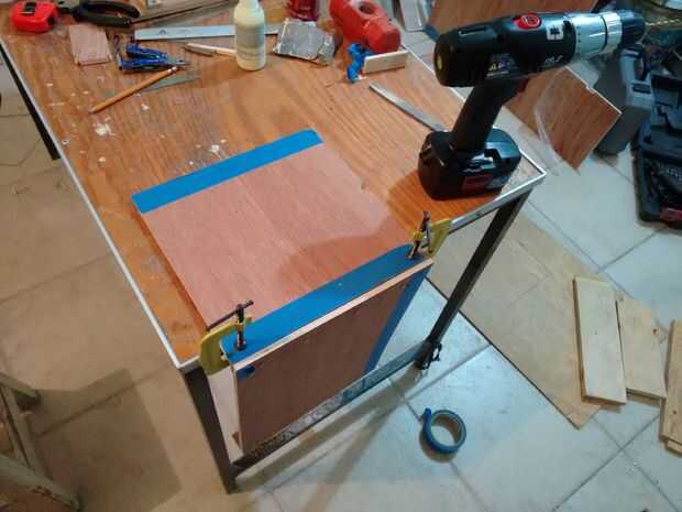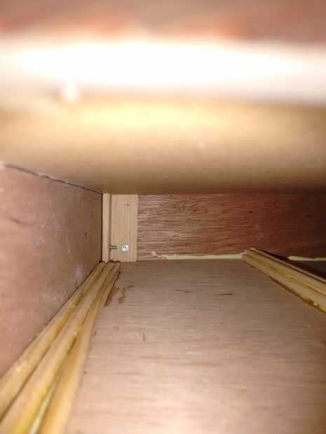 Debido a la ubicación del agujero de cajones en la parte frontal, la tira de esquina fue modificada de perforación y corte el exceso de material para garantizar el gálibo del cajón. Esas tiras de encargo fueron fijadas con tornillos para madera de 3/8 ''.