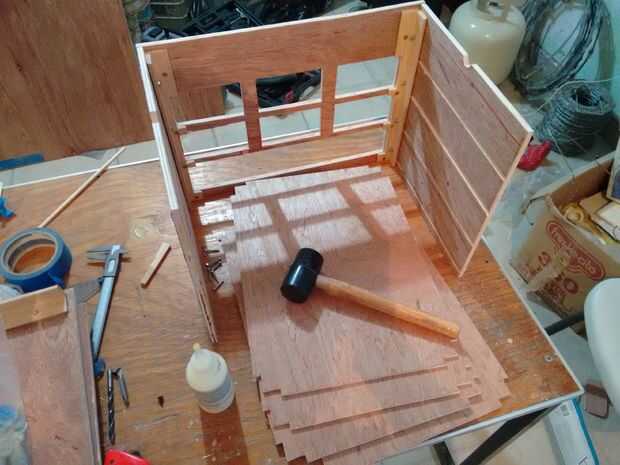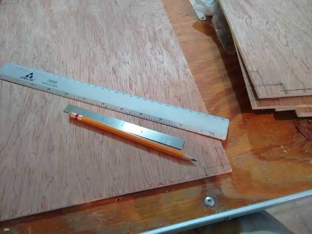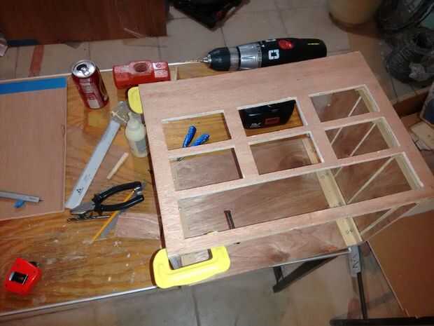 La estructura del gabinete cajón se basa en los paneles de madera en cada esquina con 1'' madera cuadrado que moldea las tiras que fueron Unidas con pegamento para madera, tornillos M3 (con una separación de unos 2 1/2 '') y los tornillos para el panel frontal.