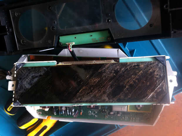 Puede desmontar la pantalla de información múltiple, extrayendo la pantalla completa. Después de haber eliminado la pantalla de información múltiple, sacar los tornillos para revelar la pantalla LCD. Abra el clip de conector eléctrico para quitar la pantalla de vidrio. Simplemente quite el polarizador en ambos lados de la pantalla LCD de peeling del panel de cristales líquidos de electrodo de vidrio laminado. Tenga cuidado de no rayar la superficie con lámina de acero o con riesgo de dañar la superficie en metros. La parte más dura para quitarse son el pegamento que se aplicó para garantizar el polarizador sobre el vidrio. Había fregado estos pegamento obstinado apagado con la ayuda de un pedazo de madera dura. Un poco de agua ayuda a ablandar el pegamento. Traté de trementina y disolvente, pero no funcionan bien. No quiero tratar de acetona como se evapourates bastante rápido y por lo tanto, se enfría el vidrio demasiado. Esto puede causar estrés térmico en las piezas de vidrio y por lo tanto y crackearlo. Otro solvente podría llegar hasta el material de cristal líquido mediante efectos capilares y diluirlo o alterar el rendimiento óptico en general.