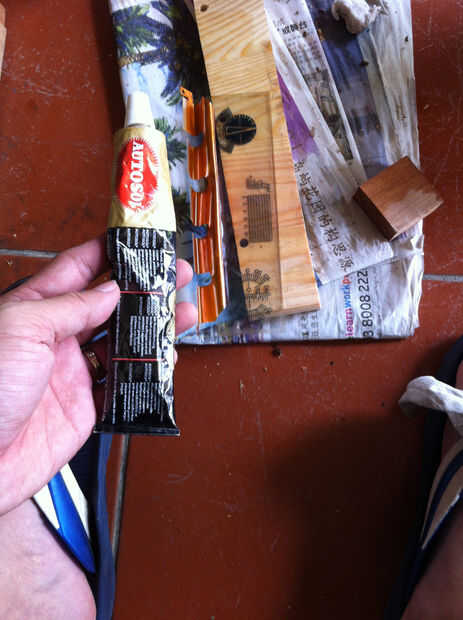 2) un pedazo de madera, madera dura funciona mejor para quitar el pegamento.