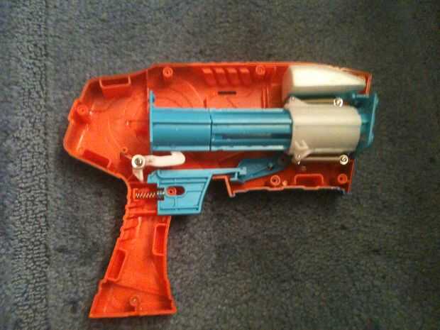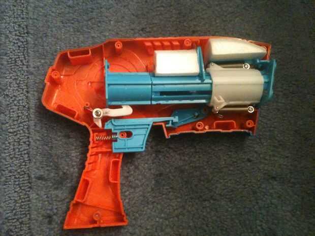 Una vez la mitad superior de la estructura había sido quitada, verá la seguridad de carga mantiene en su lugar contra el tubo con un pequeño manantial.  Tire esta seguridad hasta en Salta.