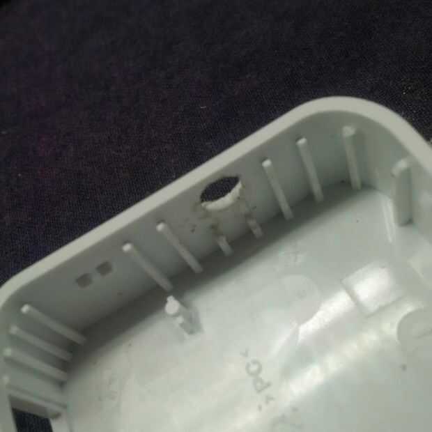 2. quitar el plástico extra bajo el nuevo agujero para caber cómodamente al final RP-SMA