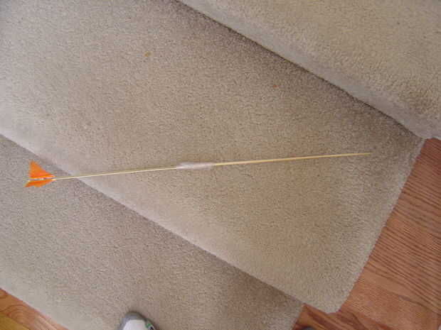 Para que sea más grande puede hacer más de los paquetes y utilizar el mismo nudo atan juntos. Luego hacer la flecha más grande tomar dos o más pinchos y utilizar a algún tipo de cinta para atarlos juntos. Entonces, para agregar plumas consigue algunos donde entre 1 y 3 de esas plumas de arte (el especie de multi color) dependiendo de lo colorido que desea. Fijar las plumas con cualquier tipo de pegamento.