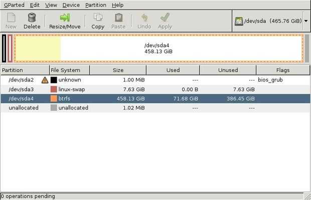 Todos los errores relacionados con btrfs han sido fáciles para mí fijar. Usted sabrá cuando hay errores ya que no podrá mover o redimensionar el sistema de ficheros. Btrfs tiene algunas instalaciones de eliminación de errores construidos en. He utilizado algunos de ellos. Nota: estas operaciones se deben ejecutar cuando la partición está desmontado. Demuestro a través del live CD de GParted.