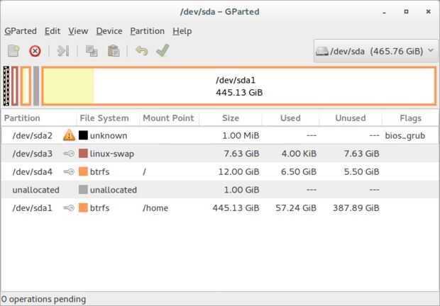 Si la partición de sistema operativo se vuelve demasiado pequeña, expandirse en el espacio. Esto es muy fácil de hacer de Gparted y btrfs le permite fácilmente crecer o achicarse la partición de sistema operativo en el lugar mientras el sistema no está funcionando - necesidad de arrancar en un live CD. Sin embargo, debido a la partición de inicio es el final de la unidad, tiene que ser movido hacia atrás para ampliar. Al mover la partición, no se puede montar. Además, esto lleva mucho tiempo porque cuenta con todos los datos que se copiarán a la nueva ubicación. Básicamente, la partición de inicio es un dolor para cambiar el tamaño.