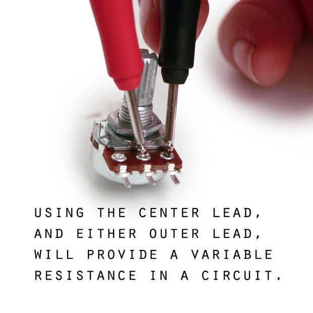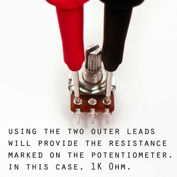 Los potenciómetros tienen tres cables. Conectando un circuito con el exteriores dos conductores, la resistencia del potenciómetro coincidirá con la resistencia indicada en el potenciómetro. Se comportará como una resistencia normal. Cuando el circuito está conectado a un centro y un exterior, el potenciómetro se comportará como una resistencia variable - convirtiendo el post del potenciómetro será aumentar (sentido horario), o disminuir (sentido antihorario) la resistencia del potenciómetro.