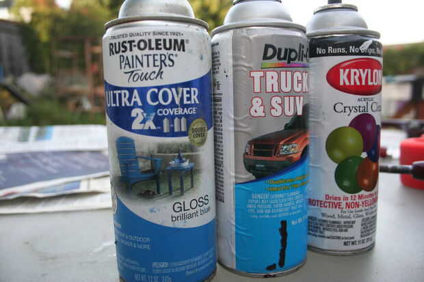 pintura de aerosol: dos colores (azul y Borgoña) y una capa transparente