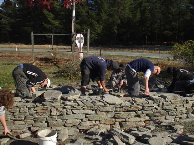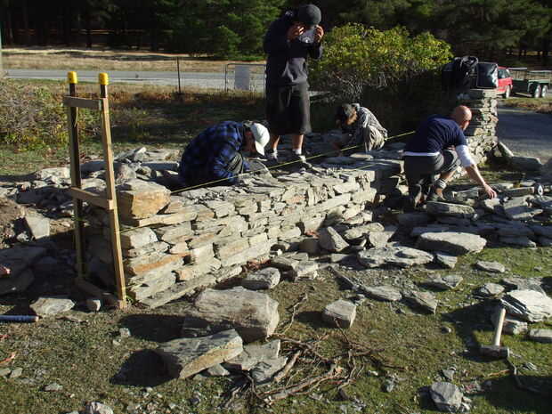 Toda la piedra usada aquí es pizarra que viene de varios sitios en Otago, Nueva Zelanda.