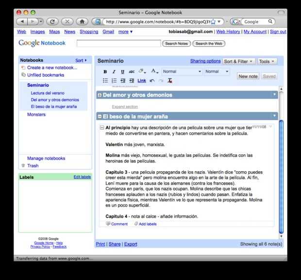 Google Notebook por su capacidad para organizar tus notas de forma lógica. El único inconveniente a este método vs uso OOo y Dropbox es que no se puede trabajar en sus notas sin conexión a internet a menos que se guarden en el equipo. Pero Internet es casi por todas partes, especialmente si estás en un campus universitario, por lo difícilmente puede ser considerado un defecto de este método.