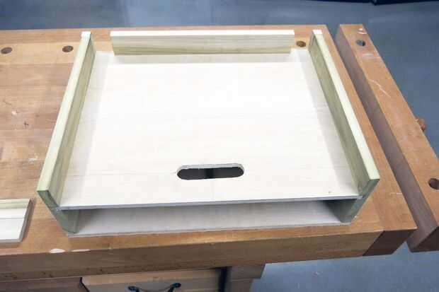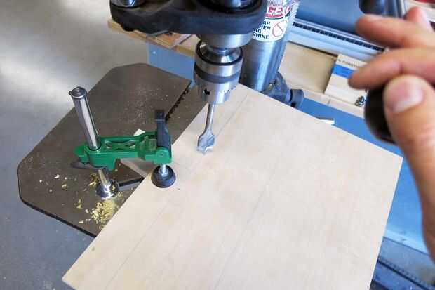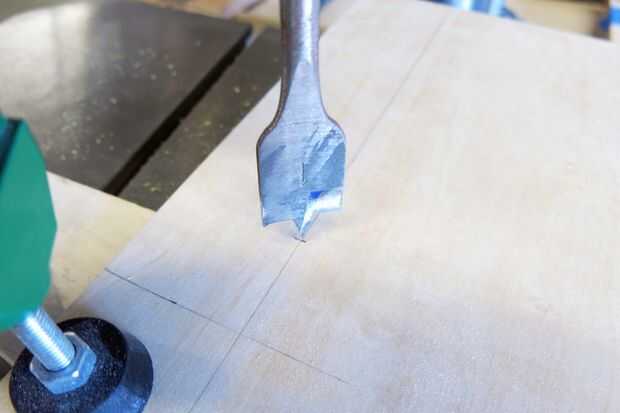 Tome un 1" espada taladro o agujero Sierra taladro en estos puntos del centro y marcar los puntos de tangencia de los círculos conectarlos. Vio a lo largo de esas líneas con una sierra de calar, luego limpiar los bordes con una Lima.