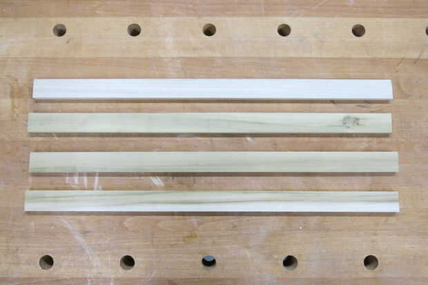 Cortar el tablón restantes en cuatro secciones de igual longitud y anchura. Terminó con 26" x1.5", que funcionó bastante bien.