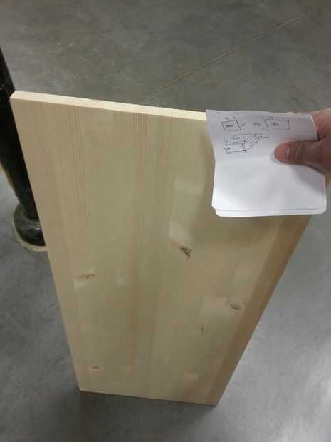 Compra un 3/4 x16 x 36 Junta en su ferretería local. He comprado pegado lateral-grado de la pintura panel, no el más fuerte que se vea. 16" ancho es perfecto para la mayoría de ordenadores portátiles. Tenía el corte asociado las siguientes longitudes: 13" 13", 4" y 5.5" (el resto).