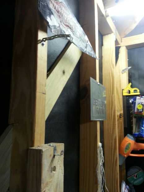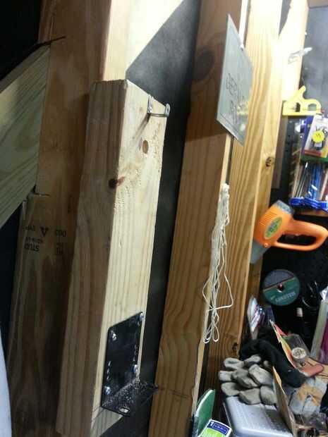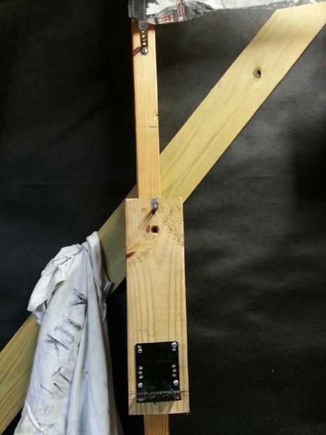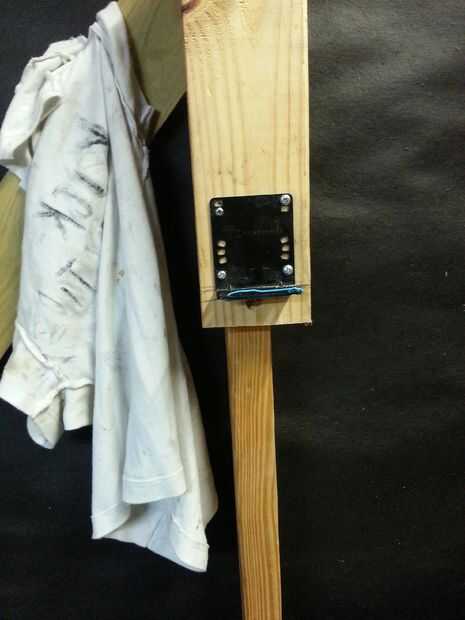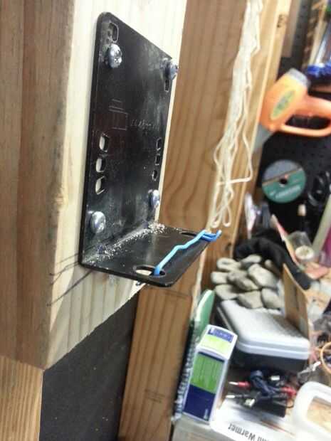 Ya hice todo antes de que decidí hacer un instructable así que perdóname. Primero perforé el soporte en L en la parte superior de la 2 X 4 para apoyar al monitor. Rizar al final para que no obstruya la pantalla. Poner el ordenador y utilizar un lápiz o algo para marcar la altura de su equipo.
