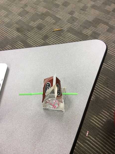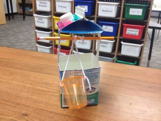 Coloque lo que usaste para hacer el asa del cubo al eje de la manivela. Para nuestro modelo más grande sólo necesitábamos amarrar la cuerda para el lápiz. Para nuestros modelos más pequeños, atamos 3" pieza del bordado del hilo de rosca a la manija del cubo y luego ató el otro extremo a la paja que se utilizaba para el cigüeñal. Asegúrese de que sus lazos del lazo no. Un nudo normal como lo haría en sus zapatos. Si haces un lazo y corbata su cigüeñal hará girar y enrolle la cadena.