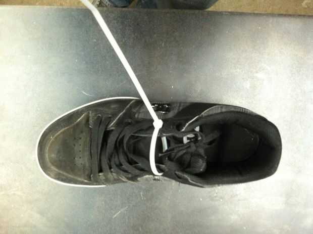 Si usted tiene acceso a sus zapatos de compañeros con hacia fuera conociendo un zip de lazo por los agujeros de cordón superior y apriete para evitar de poner hay zapatos en.