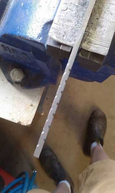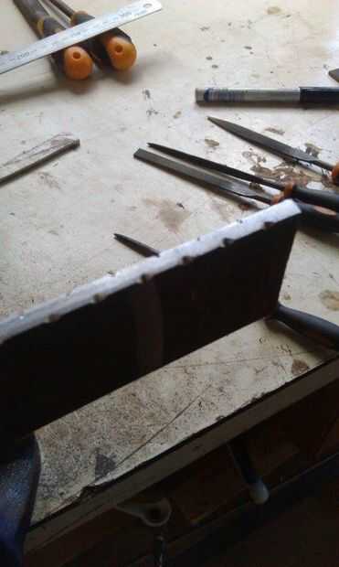 En las marcas que hiciste en los pasos anteriores, escriba o hacer un pequeño corte con una sierra para metales. Corte las muescas pequeñas significa que es más preciso. Utiliza un pequeño archivo de circulares, buscar archivo en las muescas hasta obtener un círculo agradable semi. Hacerlo en ambos lados