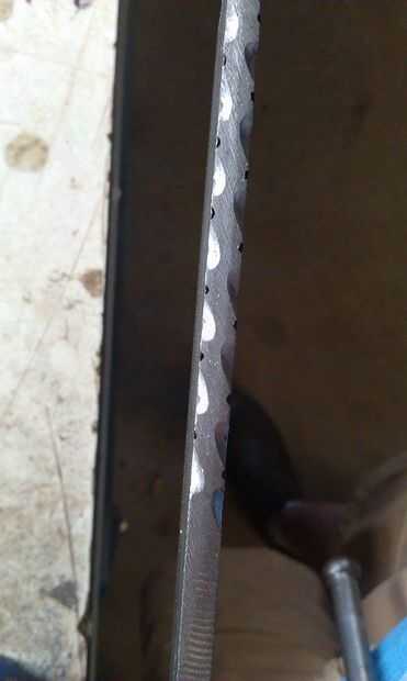Este paso es un poco complicado. En la mayor parte de los óvalos hacer otra muesca pequeña unos 3mm del borde del óvalo. En esta marca, utilice una lima triangular para hacer una muesca afilada apuntando hacia el óvalo. Hacer esto en el otro lado.