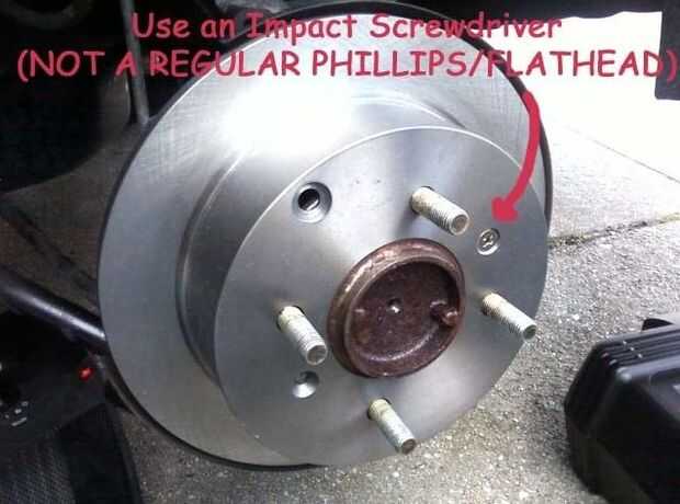 10) muchos rotores cuentan con un pequeño tornillo que sujeta el rotor al ras con el cubo. Algunas personas dicen no es necesario, pero utilice un destornillador de impacto o puede tira hacia fuera. Asegúrese de usar anti-seize al volver a aplicar el tornillo.
