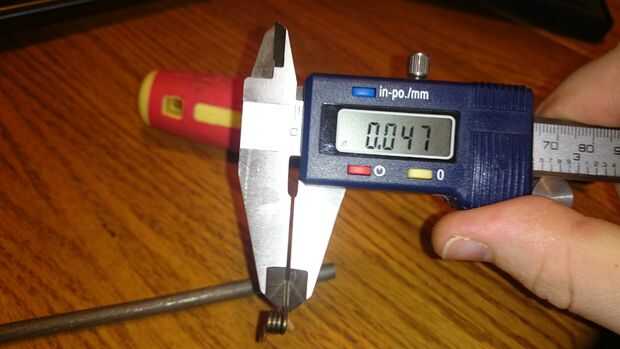 En el vidente hay un muelle de torsión en el que el grosor del cable es 0,047". con los resortes una manera de reducir la fuerza debe tener un alambre de diámetro más pequeño. Fui a una tienda cercana y recogido algún alambre, alambre de la música es más de un tipo después de un uso. alambre es alambre de resorte, utilicé una pieza con un espesor de 0,038"(creo que dice las especificaciones 0,037")