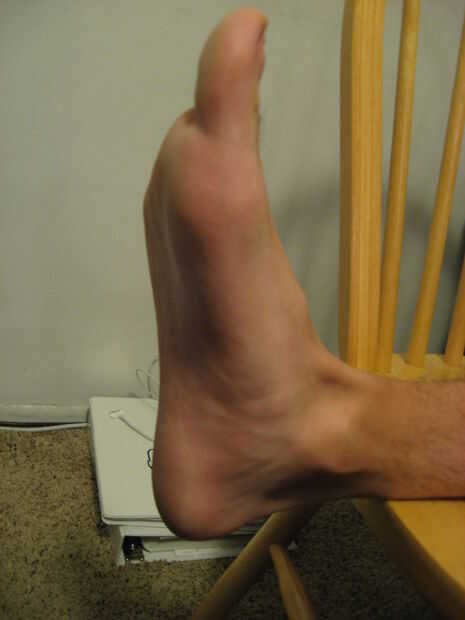 Asegúrese de que pie es limpiado y sin heridas abiertas en el pie. Puso el pie en posición flexionada. Debe permanecer de esta manera para el trabajo de cintas.