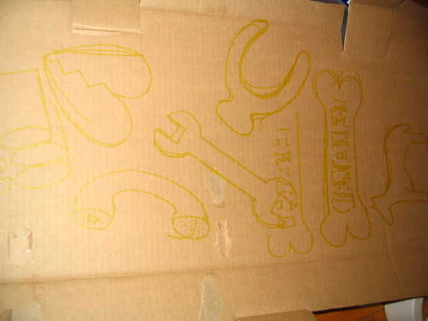 En primer lugar, que había esbozado las formas que quería usar en la cartulina. Perdón el sharpie amarillo, yo no quiero tener negro que muestra a través de la cinta.