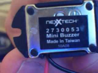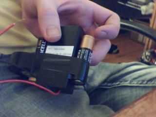 Muy bien! Así que, fui y acabo de comprar una alarma electrónica simple de Radio Shack y unos LED y tal, aunque el timbre no es tan fuerte como esperaba, todavía funciona bien!