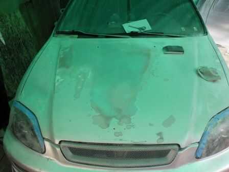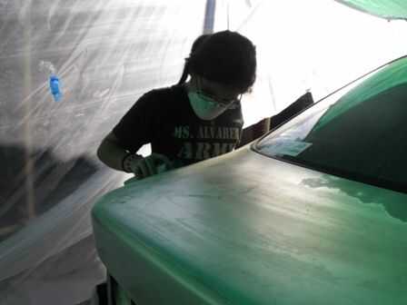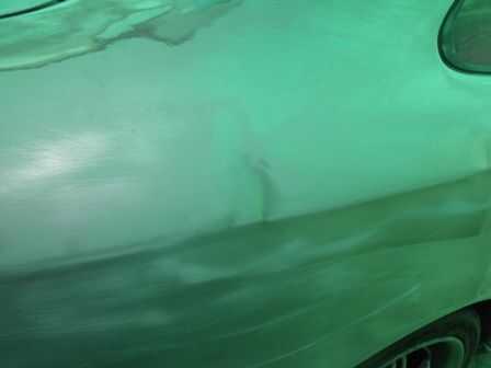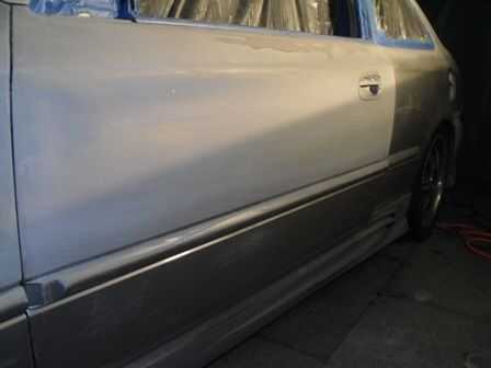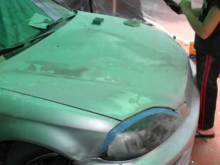El primer paso es lijar, la cantidad de trabajo que van a tener depende de las condiciones de la pintura real. Mi pintura era realmente mala, la mayoría de la capa transparente se desvaneció y tenía burbujas debajo de la capa clara. Tuve que lijar la capa clara para conseguir el mismo nivel de la pintura y deshacerse de todas las burbujas, usted puede conseguir lejos con lijar un poco si están pintando el coche en colores claros pero en colores oscuros como el negro, los defectos son más evidentes que otros.