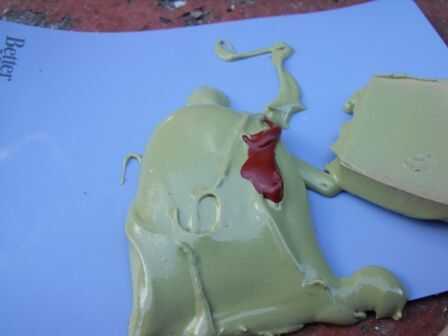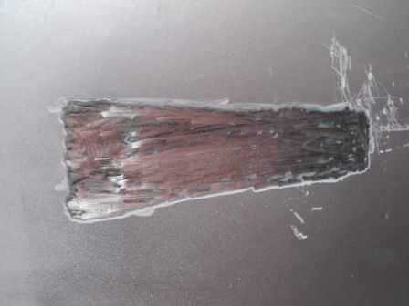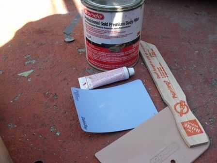 Ahora puedes preparar bondo, las instrucciones de mezcla están en el poder pero la proporción es una parte del tamaño de golf de bondo y una línea de 4 pulgadas de endurecedor. Al mezclar el bondo tienes que hacerlo en un movimiento plegable para intentar evitar que el aire en la mezcla y mezclar hasta que el color es uniforme.