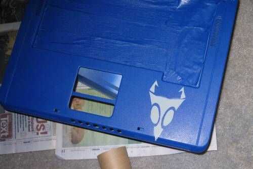 En primer lugar, usted necesita encontrar una manera para fijar la plantilla a la laptop. La parte más importante de esto es que no quiere dejar un residuo cuando se quita. He utilizado un papel de la etiqueta engomada desprendible, pero creo que cinta de pintor funcionaría muy bien también.
