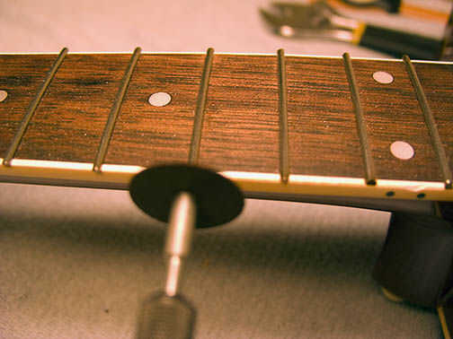 Consulte con usted dedos de partes afiladas de los trastes. Te encuentras, lije con cuidado les embotado.