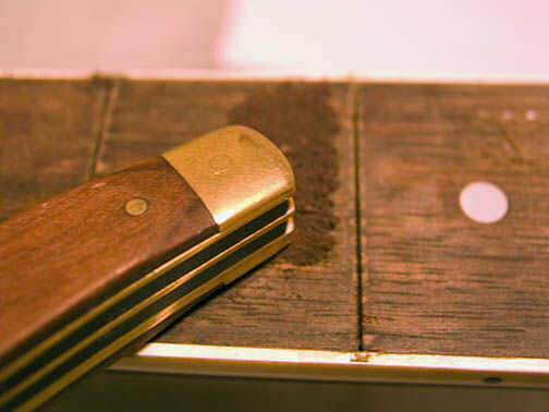 Embalar el polvo abajo en el cincel con un cuchillo de bolsillo cerrado, como lo hice, o algo similar. conseguir mucho en lo que pueda. Paquete de tan ajustadamente como sea posible.
