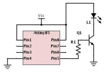 - Conectar una resistencia de 100 ohm al pin 5 de lo attiny