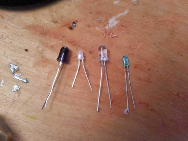 Tome los cuatro LED y ponerlos en la superficie de trabajo