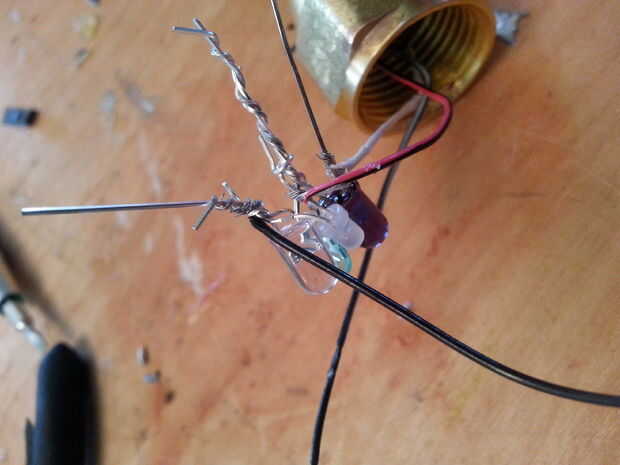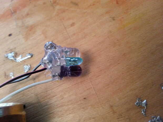 Envuelva el cable blanco alrededor de la pierna libre del IR LED (es también la pata negativa si le preocupa)