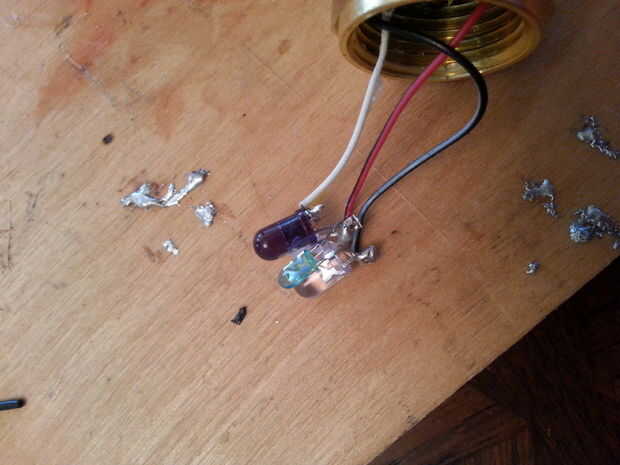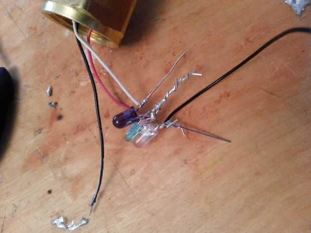La soldadura que lío junto, teniendo cuidado de no calentar demasiado los LEDS o no