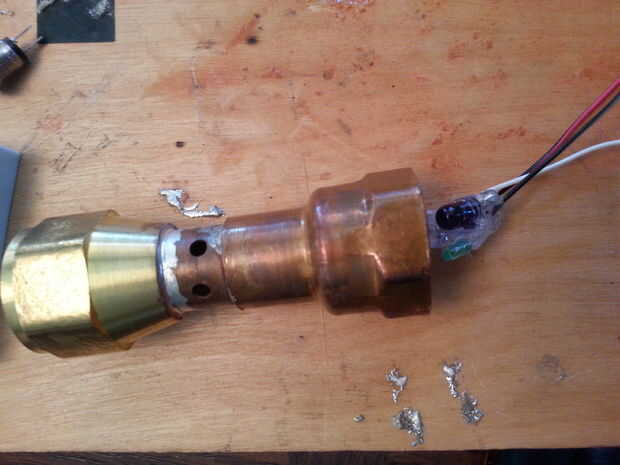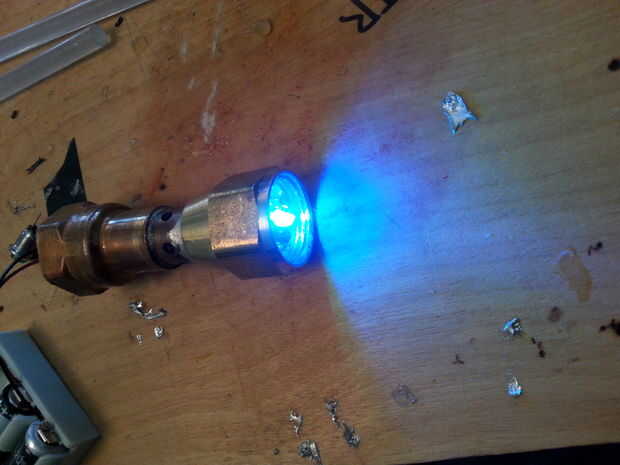 Cuando el circuito es a través de empuje los LEDs hacia la tuerca flare por lo que no son visibles. Prueba el lío.