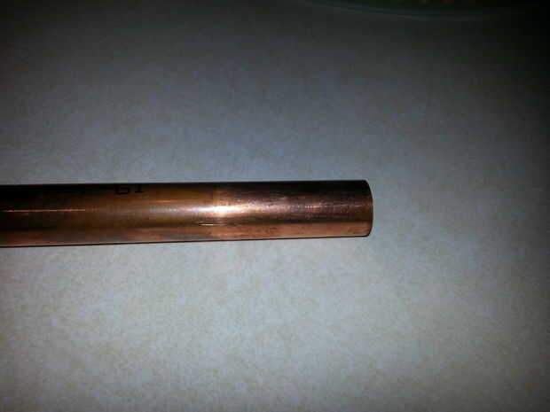 • Medir 1" hacia abajo desde el final de la 1/2" cobre de la pipa, marca con un clavo, rotulador o lápiz