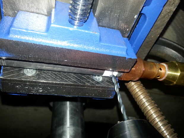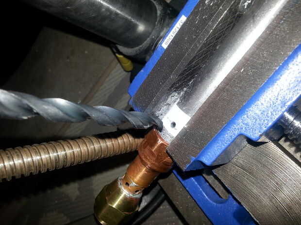 • Coloque una 5/16 broca en el taladro, repita el proceso de perforación. Ayudará a un poco de aceite de corte