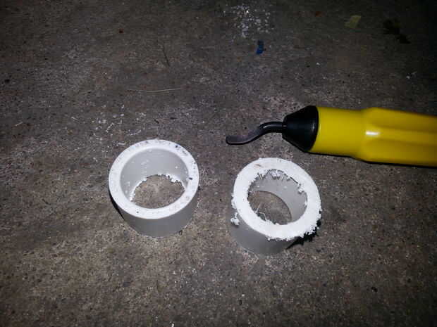• Quitar las rebabas del interior de la tubería de pvc (hay una ranura en el medio acoplamiento que conseguirá de la manera más adelante si no se)