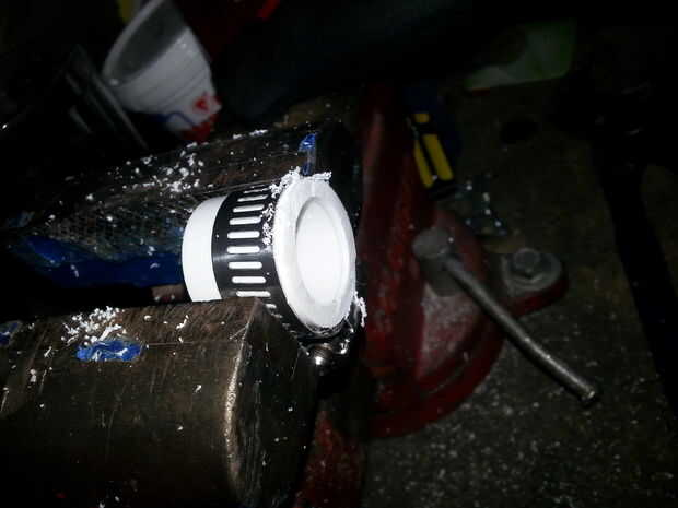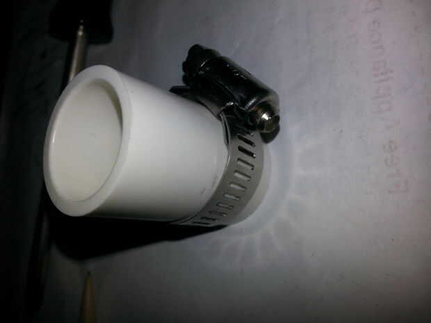 • Coloque una abrazadera de tubo sobre el acoplamiento del pvc, alineado con una de las marcas previamente hechas