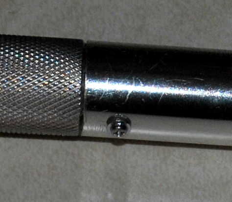 Utilice un destornillador para la tecla en su lugar (donde el botón se alinee con el agujero perforado en el mango) y pegamento caliente el botón en su lugar. Prueba otra vez!