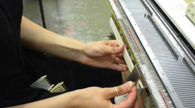 El peso del peine o peine de molde es una pieza rectangular delgada con largo, que sobresalen de los dientes que ayuda a establecer la primera fila de puntos en las agujas. Presenta en diferentes anchos para dar cabida a diversos números de puntadas. Pesos de garra son pequeñas piezas de metal que ayudan a la formación de puntadas por dibujo de la tela de de la máquina. Reposicionando estos pesos, subiendo sobre cada 20 filas, el borde de puntos de sutura forma consistentemente y uniformemente.
