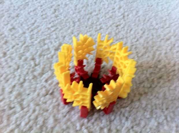una modificación a una Granada de KVG famoso por halo99. excepto sin la metralla y con 3 bandas de goma.PARTES:16 conectores rojo8 conectores amarillos2 conectores blanco2 conectores de ranura simpleuna barra amarillaun espaciador grisun conector en