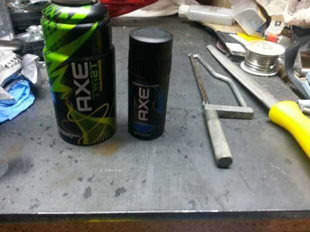 Tamaño regular lata de spray de Axe y una de las pequeñas latas de tamaño muestra o viajes.