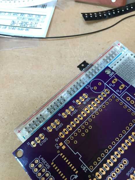 Mis primeros errores fue soldar el Teensy al tablero usando sólo un cabezal de soldadura que se muestra en la segunda foto. Esto hizo la conexión de USB un poco apretado y no dejó mucho espacio para los cables de laser salir de la Junta. Así que añadí un zócalos de Rúbrica femenina para dar el espacio más vertical Teensy, demostrado en la última foto.