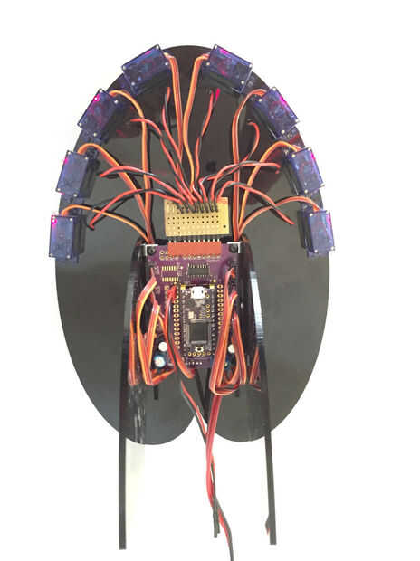 También encontré que tenía suficiente longitud en los cables de servo que pude lazo de ésos abajo debajo de la mesa a tomar el relevo. La parte de atrás resultó notablemente ordenado dado que son un total de 40 cables que salen de la tarjeta!