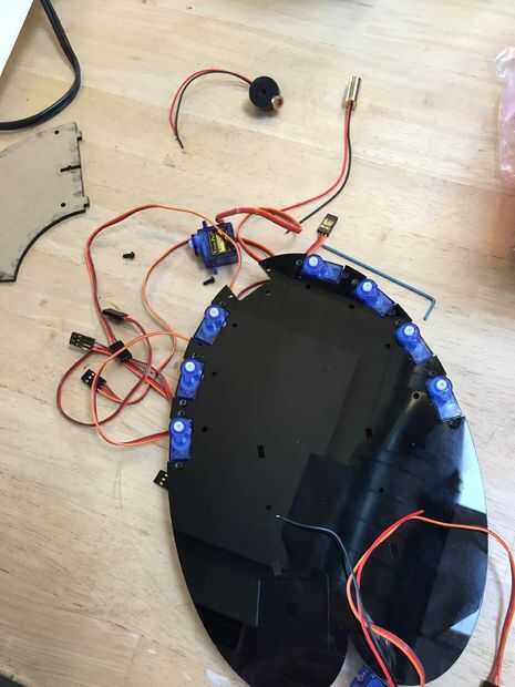 Montaje final fue bastante rápidamente. Los orificios de montaje de servo eran demasiado pequeño para un tornillo M2.5 a solo un beso por lo que golpeado ligeramente a un hilo de rosca M2.5. El plástico no es grande y el tapping no que profundo por lo que no recomiendo este truco donde hay mucho par en los servos, pero aquí sólo trabajó fina y me salvó de tener que jugar con 16 tuercas pequeñas en la parte posterior.