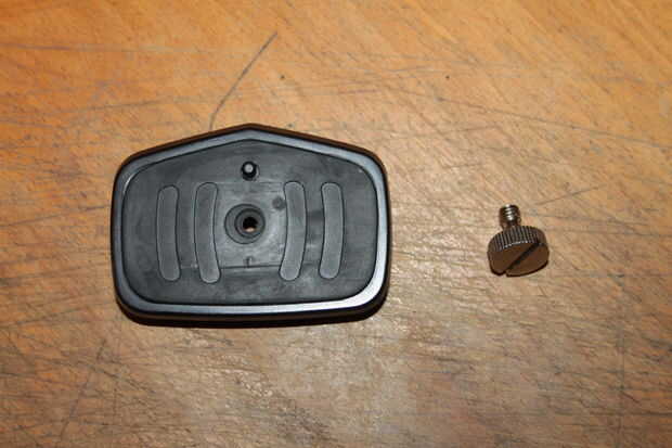 (Esto puede variar según el tipo de trípode que tiene, en algunos (mayor calidad) trípodes puede que tenga que quitar un anillo de sujeción antes de ser capaz de quitar el tornillo original. El mío es relativamente barato y el tornillo sólo es retenido por una placa de goma, girando el tornillo hacia la izquierda mientras que tirando un poco de funcionaba bien para mí.)
