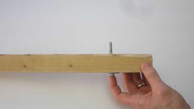 Las dos tablas se unen junto con un perno, una tuerca y arandelas de tres. Deslice una arandela en el perno. Continuación, inserte el perno a través de la primera junta. Agregar en una lavadora de segunda en el otro lado de la Junta. Montar en el segundo tablero. Por último añadir una tercera arandela y una tuerca para sujetar en su lugar. No apriete demasiado la tuerca o las tablas se pegan y no abre correctamente.
